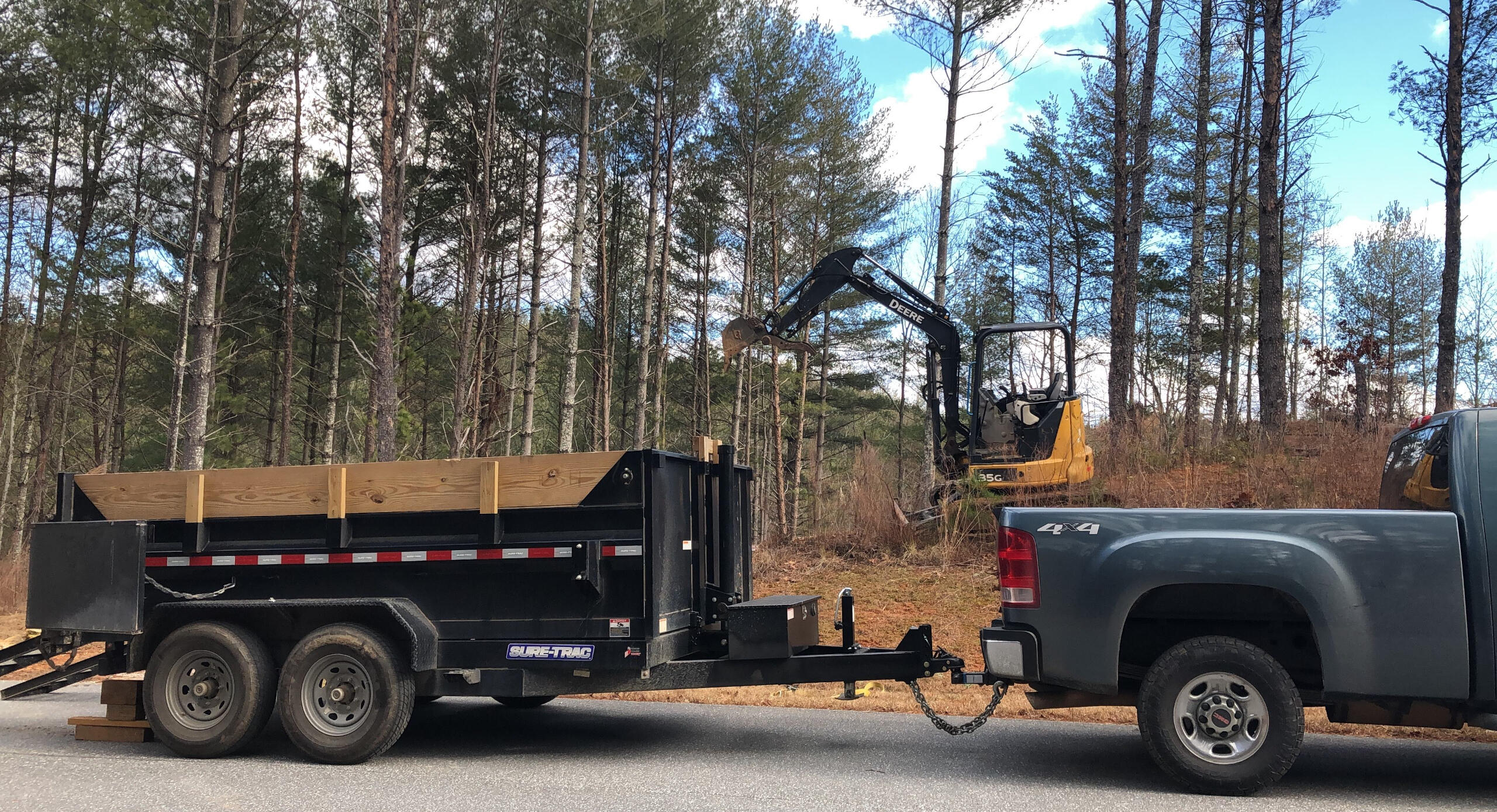 JP Built has the equipment to the assist homeowners.We also rent our John Deere 35G excavator and Sure-Track dump trailer capable of carrying 8000 lbs (4-Ton).Our excavator, tractor, dump trailer and truck can assist homeowners easily with their projects. This equipment assists us in building and renovating home through Buncombe and McDowell Counties. We can haul dirt or gravel for your projects. Tree stumps, mulch are easily handled.Just let us know what your needs are.